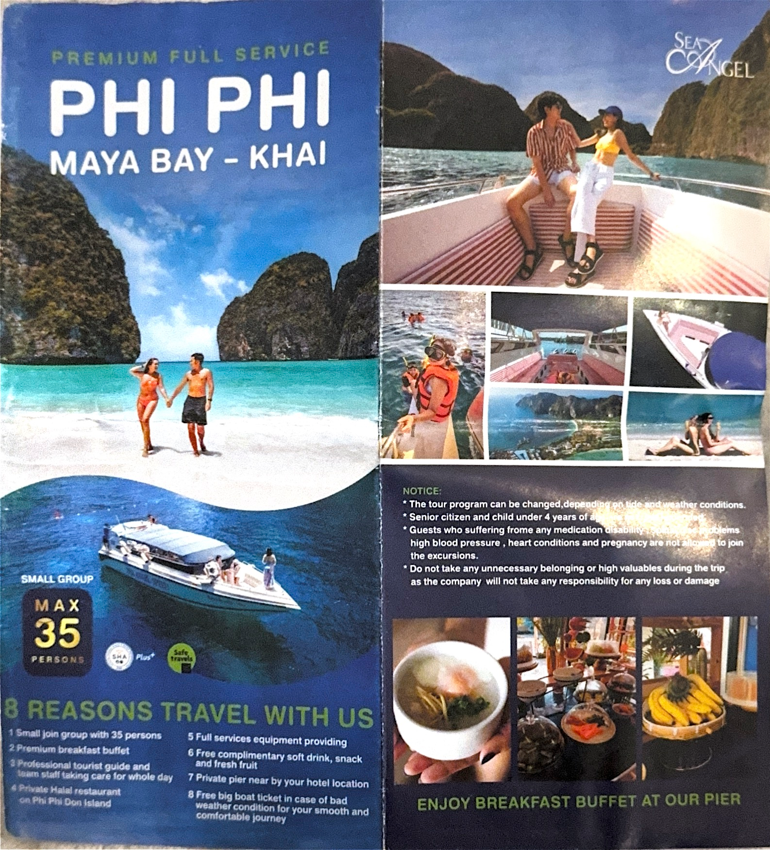 We booked a tour with Sea Angel (3,400 baht/adult base price) , and they picked us up from our hotel in Patong around 8:30 AM and drove us to their private pier. They offered a breakfast buffet there, but since we had already eaten at the hotel, we skipped it.